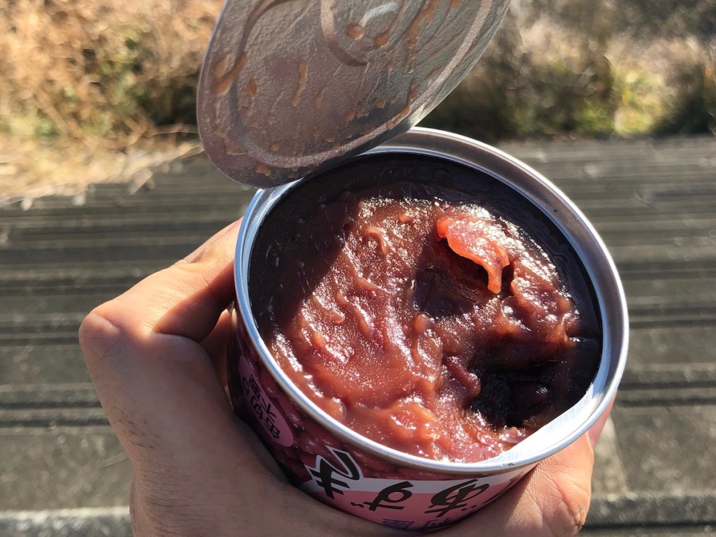 井村屋のゆであずき。もちろん、缶切り不要なものを買ってきました。缶にぜんざいのレシピが書いてあったのですが、このひと缶で2人分作れるのだとか……ちょっと多いけど、現場で使い切るしかありません。