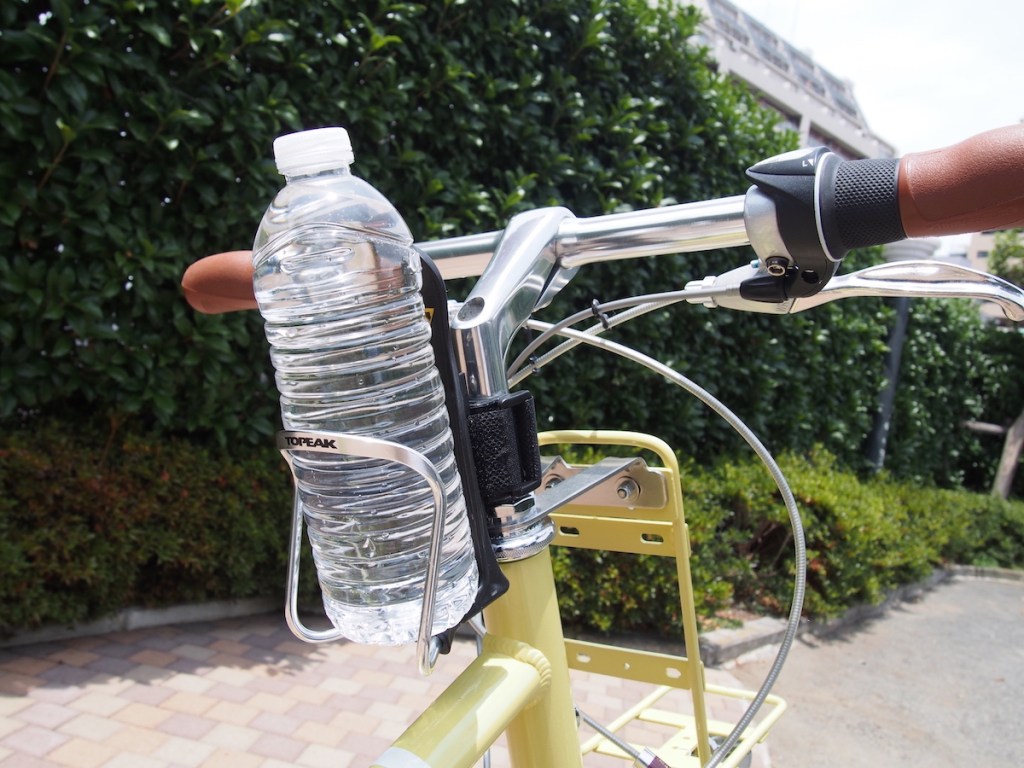 そんなときは、自転車のハンドルポストなどにマジックテープで簡単に付けられるボトルケージ台座を使うと便利です。