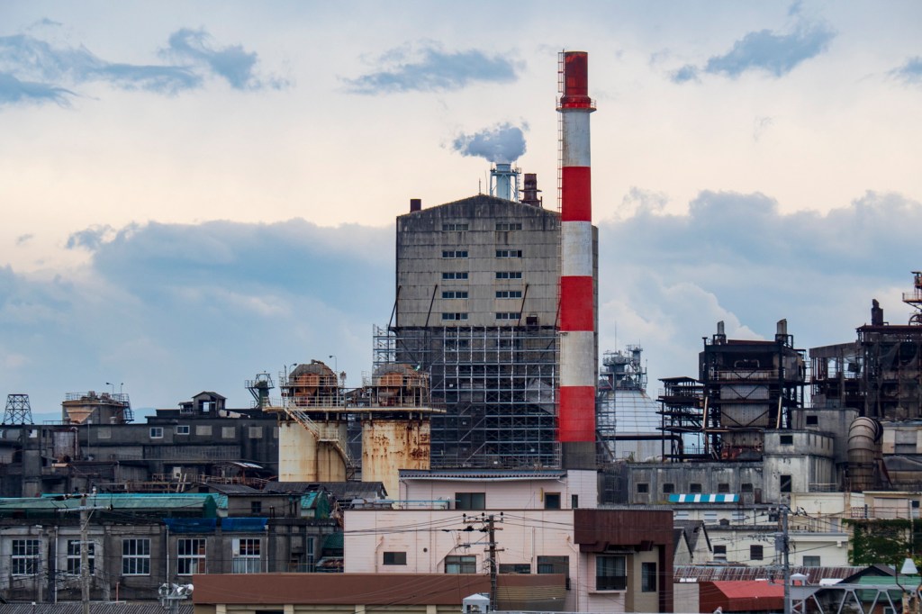 吉原は紙の町だ。岳南電車の沿線もそうだったが、大きな製紙工場がいくつかある。前方に見えるのもそのひとつだ。