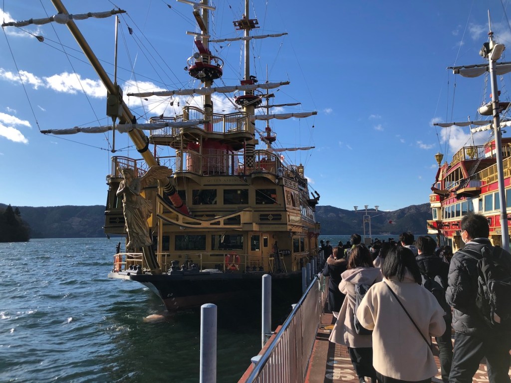 ここから海賊船に乗るのだけれど、少し時間がある。ただ、ゆっくり食事をするほどでもないし、人気の「Bakery & Table 箱根」は少し行列ができていた。