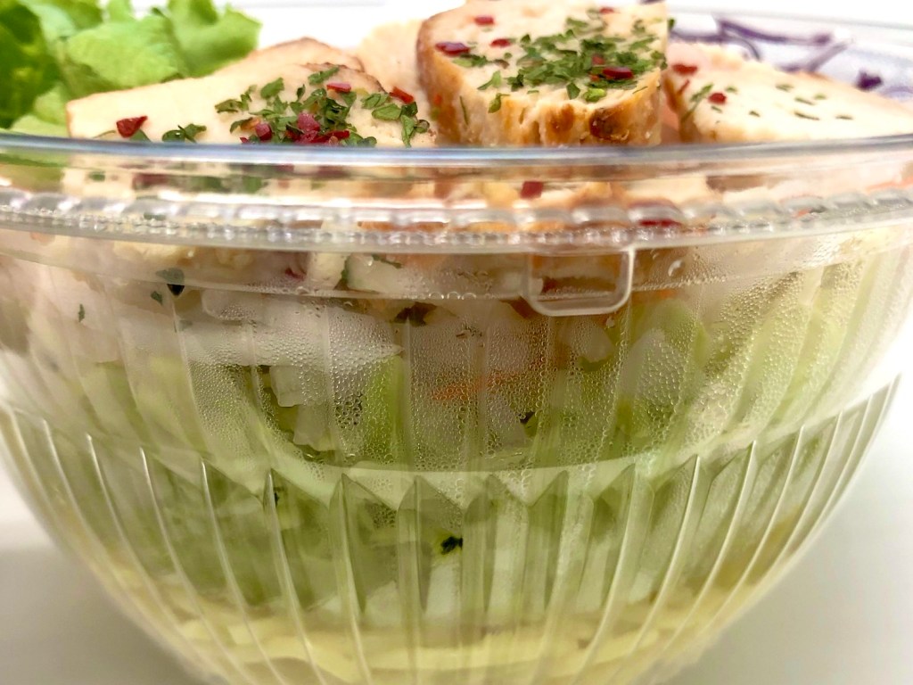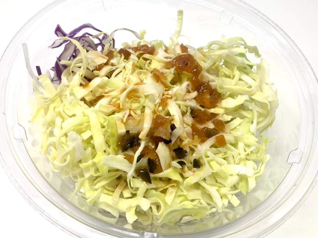 たんぱく質の量をアピールするパッケージですが、このパスタサラダの主役はなんといってもキャベツではないでしょうか。