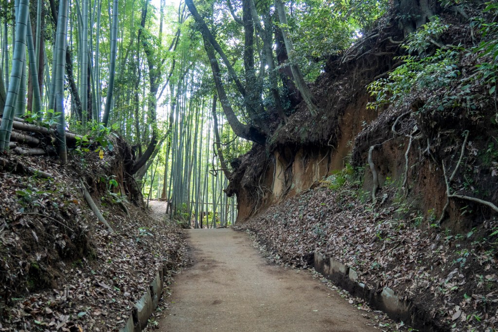 布田道と鎌倉古道が交わるあたりにあるのが「関屋の切通し」。このあたりは、かなり昔からあると思われる切通しがいくつもあるが、確かにこの切通しは立派だと思う。散策している人も少なくないので、自転車で通る際は気をつけたい。