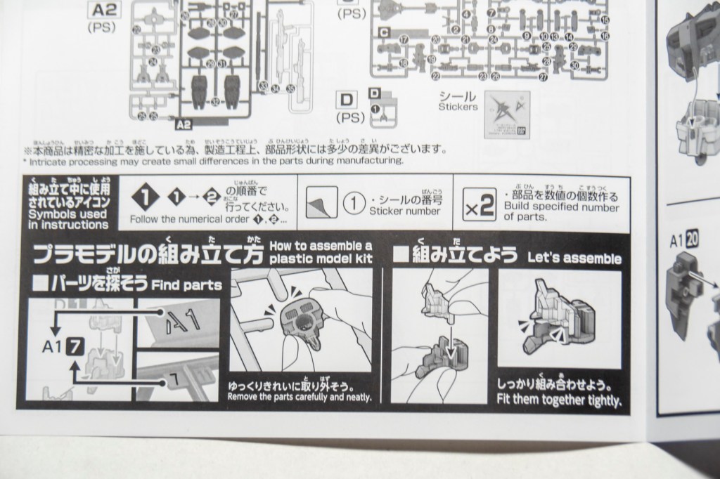 そして、接着剤不要なだけでなく、ニッパーすら不要であることが説明書からもわかります。パーツを指先でプチッと外すなんて、横着する以外では未体験です。事前にわかって買っているのに、ここで改めて「本当にそうなんだ」「へー」と心の中でつぶやきます。