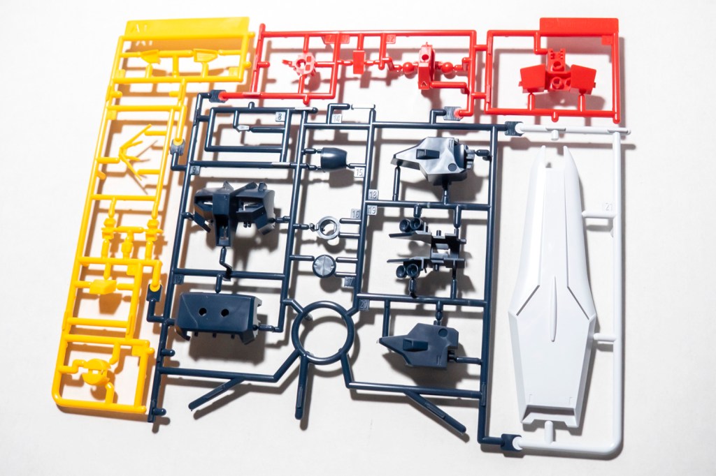 4色成形のランナー。話には聞いたことがありましたが、実際に手に取るのは初めてです。これだけでもワクワクしちゃう。それにしても、1980年代のガンプラとはまったく異なる景色です(当時買ったことはなくても、模型店で箱は開け放題だったので)。