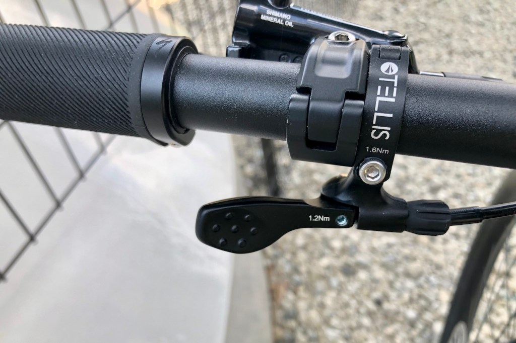 レバーは、ハンドルの左側に取り付けられています。私は比較対象をもっていないのでわかりませんが、ショップによればレバーの操作感は想像以上によいとのこと。