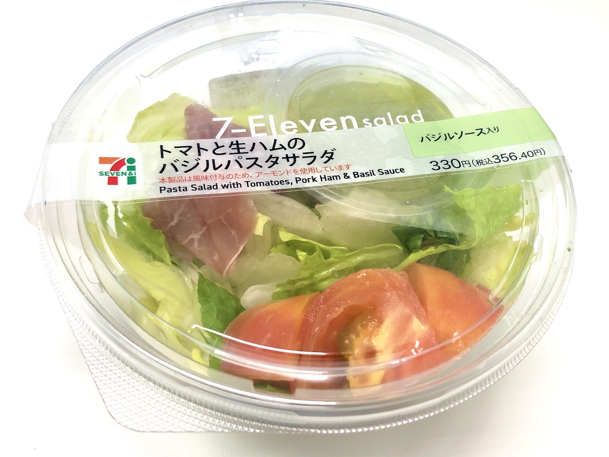 セブン-イレブン「トマトと生ハムのバジルパスタサラダ」は色味と食感がよい