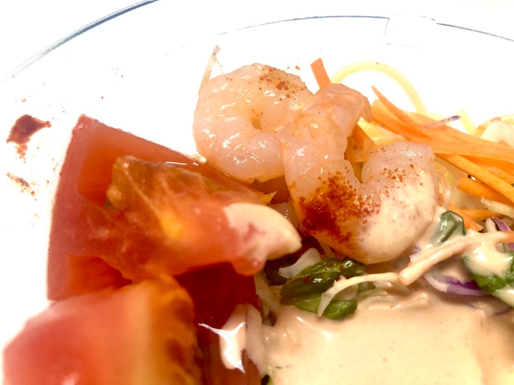 それとも「いや、私などはしょせん“風”でございますから……」という謙遜な姿勢なのでしょうか。しかし、私がいちばん気になったのはドレッシングではなく、この商品のイメージリーダーである「海老」でした。