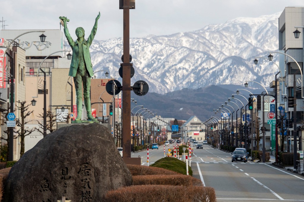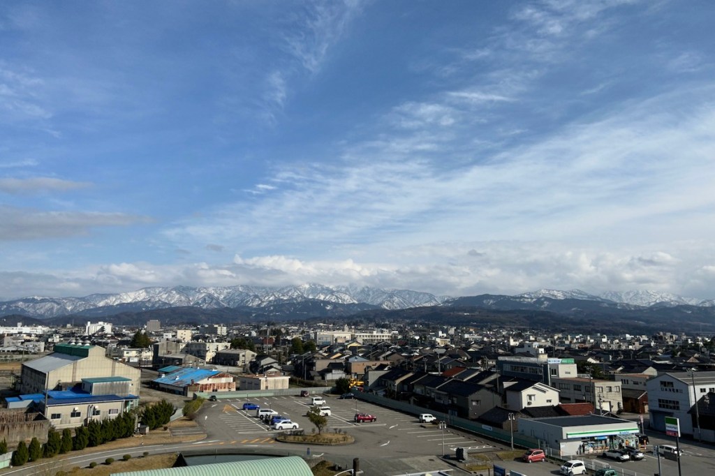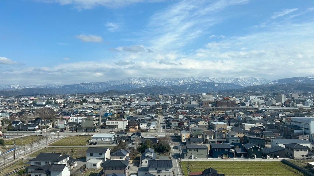 それはそうと、魚津も街中のどこからでも立山連峰が見えてすばらしいです。あいの風とやま鉄道に乗っても、車窓からよく見えます。なんだか、松任谷由実の「ビュッフェにて」が聞こえてきそうな風景です。