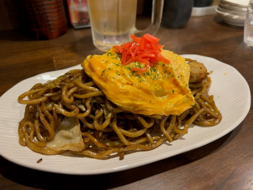 太くてコシのある麺と(濃いけど)濃すぎない感じのソースが特徴の焼きそばで、しかもゴロッとしたジャガイモが入り、上からは濃厚な玉子。口に運ぶとちゃんと味のバランスが取れていて、なかなかしあわせな気分になれます。
