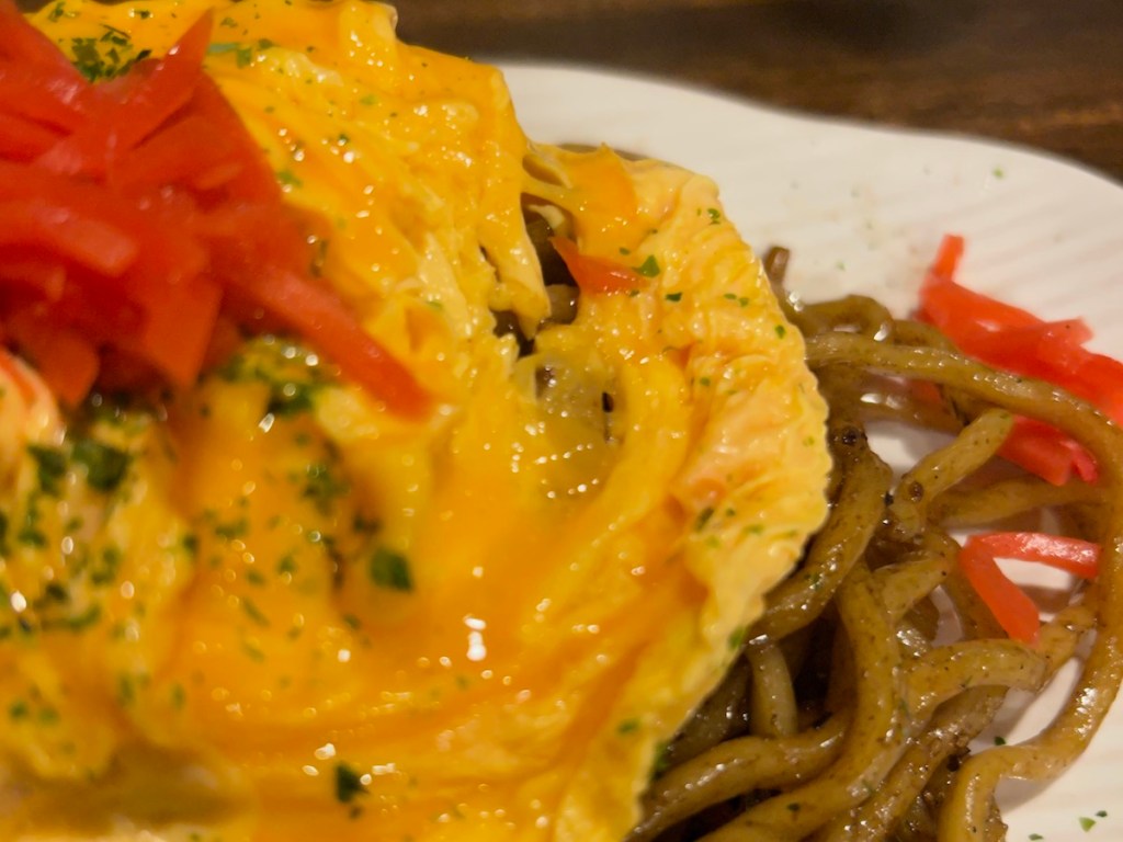 目玉焼きかと思ったら、いわゆるオムそばともまた違った、ふわとろ系のオムレツがのったスタイル!