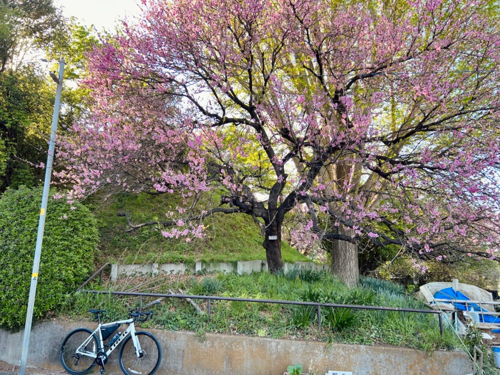 ソメイヨシノに替わって八重桜が咲き誇っているところが多かったが、恩田川沿いを走っているときに目に入ったのは、八重桜ともまた違った感じの、ピンク色の花をつける木。