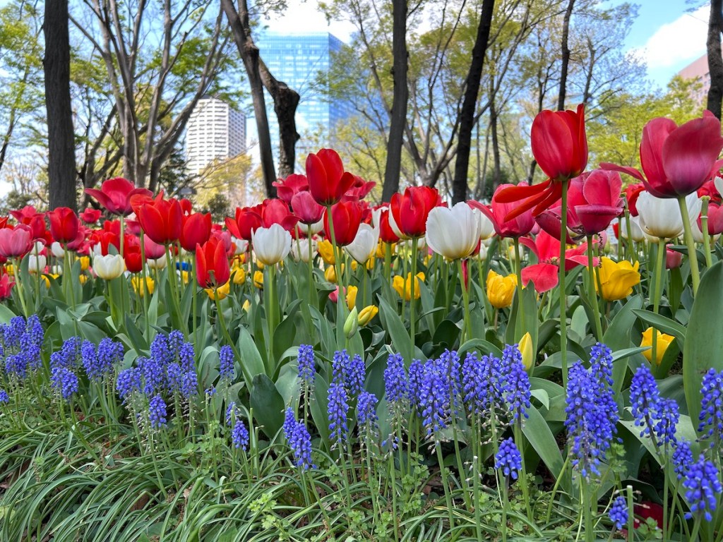 バルブガーデンにもたくさんの花が咲きますが、その中からチューリップとムスカリです。