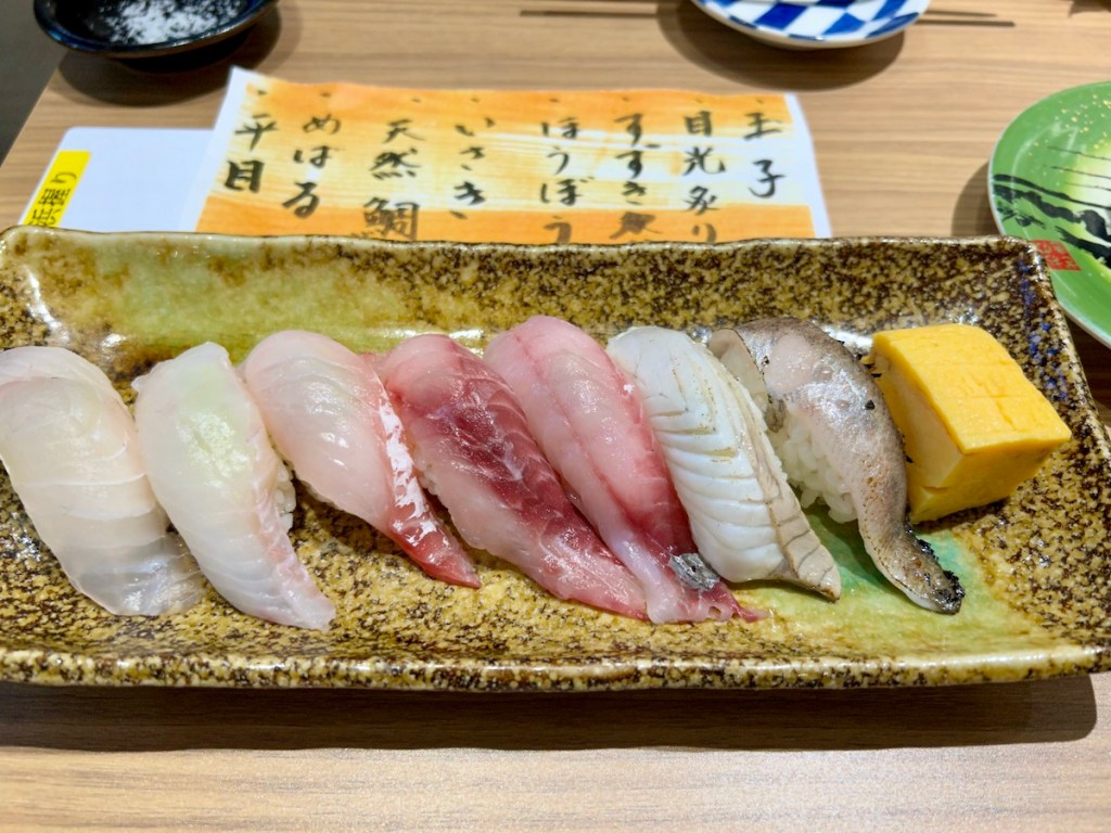 駅前の「ラトブ」という商業施設にある「おのざき ラトブ店」で、ランチメニューの「常磐もの七浜握り」をいただきます。