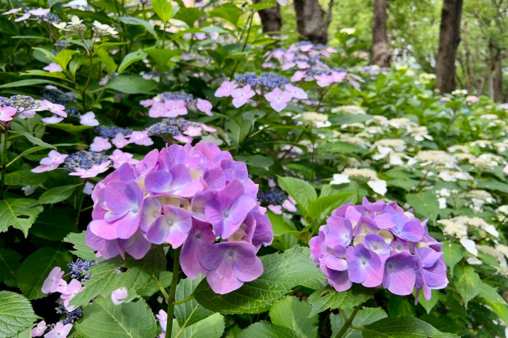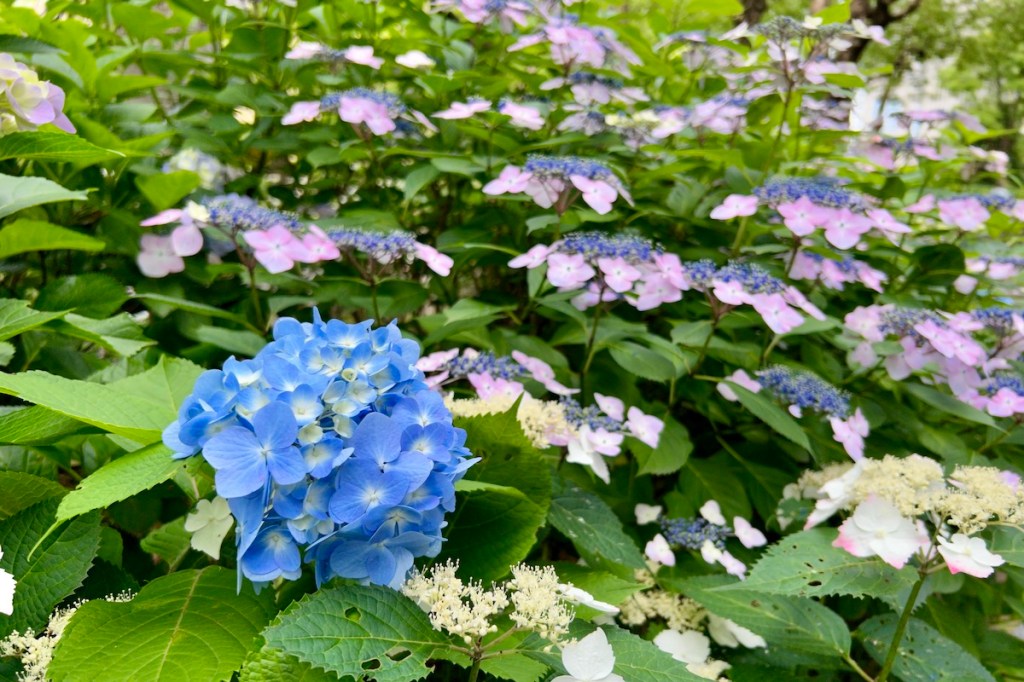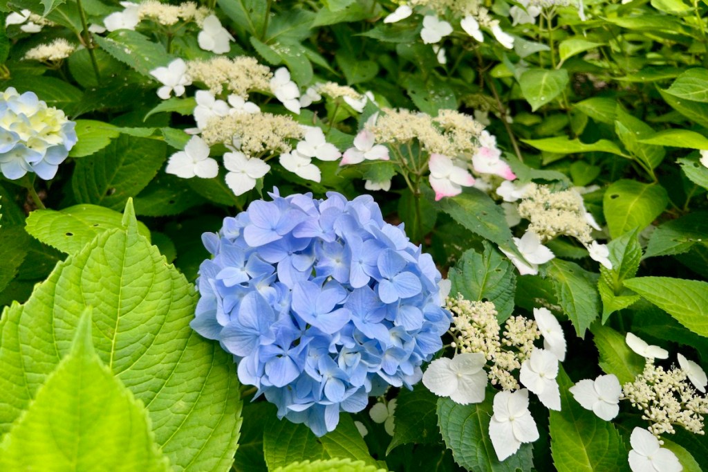 そして、セイヨウアジサイとガクアジサイのコンビネーションが楽しめるのも、魅力です。