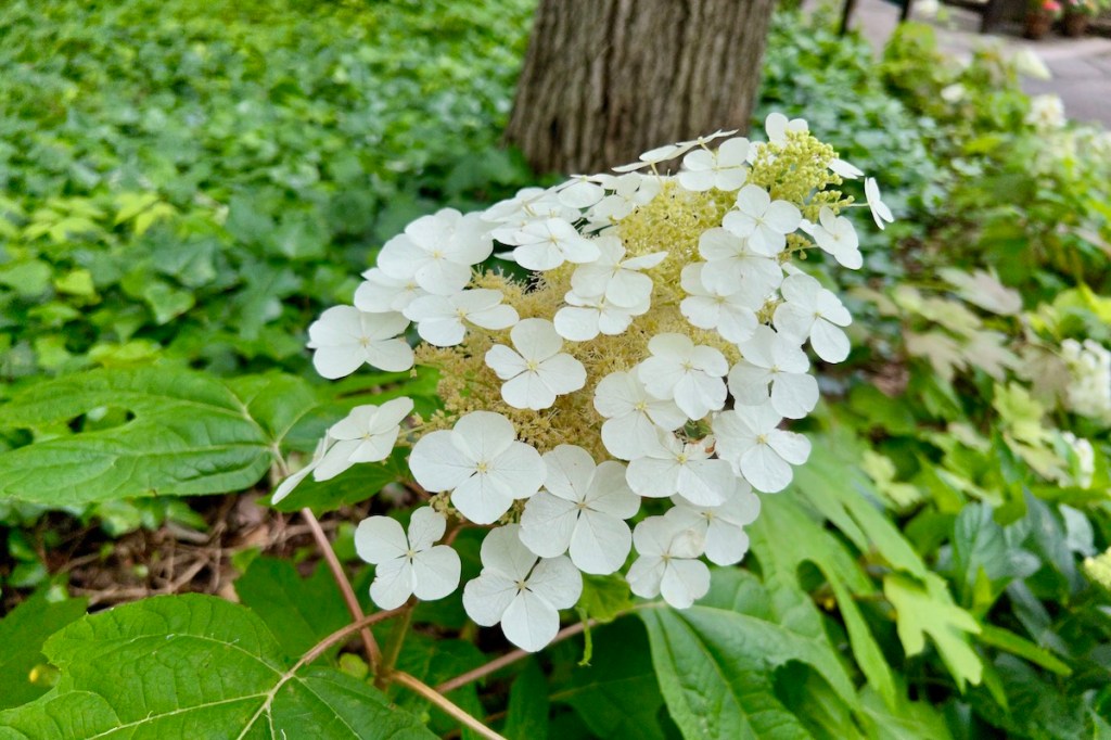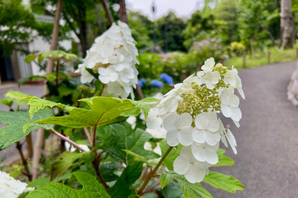 先日の記事では写真を紹介できなかった「カシワバアジサイ」も、たくさん植えられています。