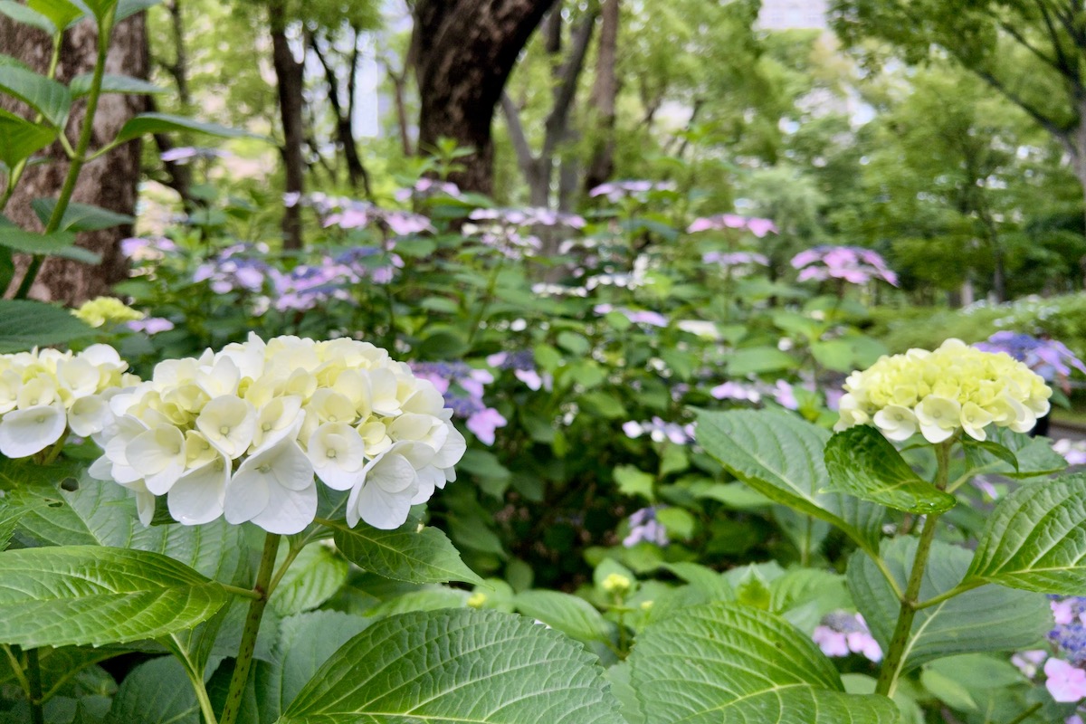 新宿中央公園に咲く花:色とりどりのアジサイ
