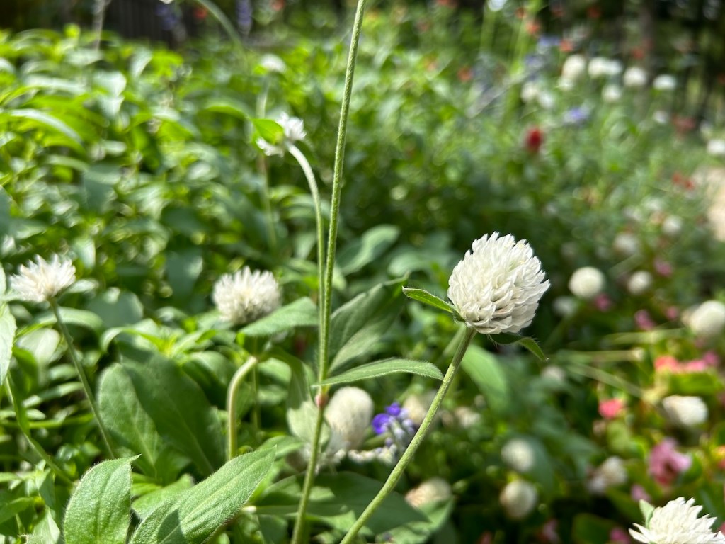 カタチから言って千日紅だと思うのですが、白い千日紅には馴染みがないので「?」付きで。