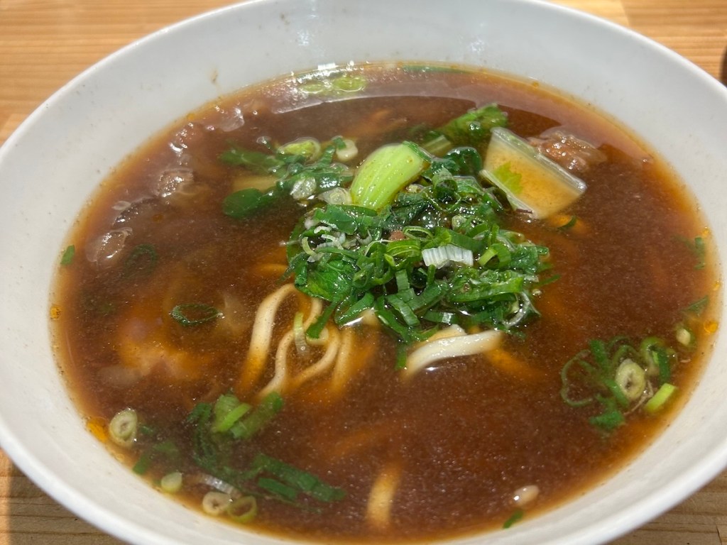 実はこのとき、自分が何を注文したのか明確には覚えていない。ただ、写真のようにモツが入っていたのは覚えているし、モツだけでもなかったはずだ。ということは、半筋半牛肉麺だったようだ。