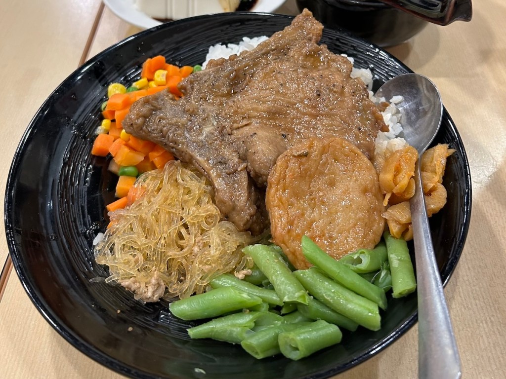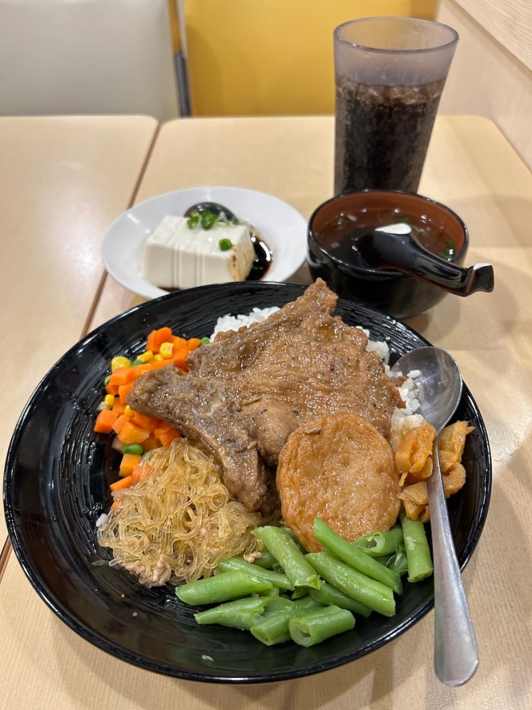 肝心の排骨飯も、チェーン店らしいというのだろうか、万人ウケする味付け。ピータン豆腐もあったので、ちょっと私には量が多いと感じたが、でも肉も意外とやわらかく、食べやすくておいしかった。