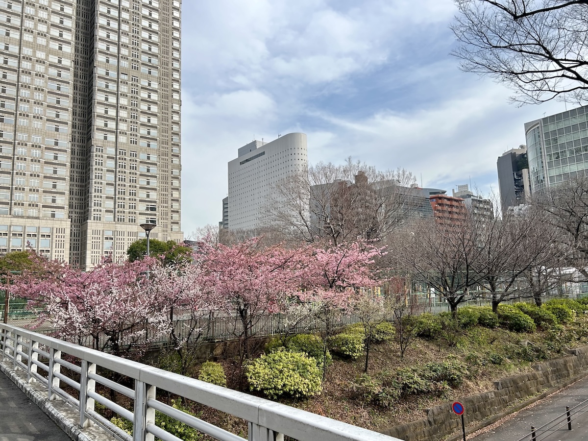 新宿中央公園に咲く花:2月、梅と河津桜。