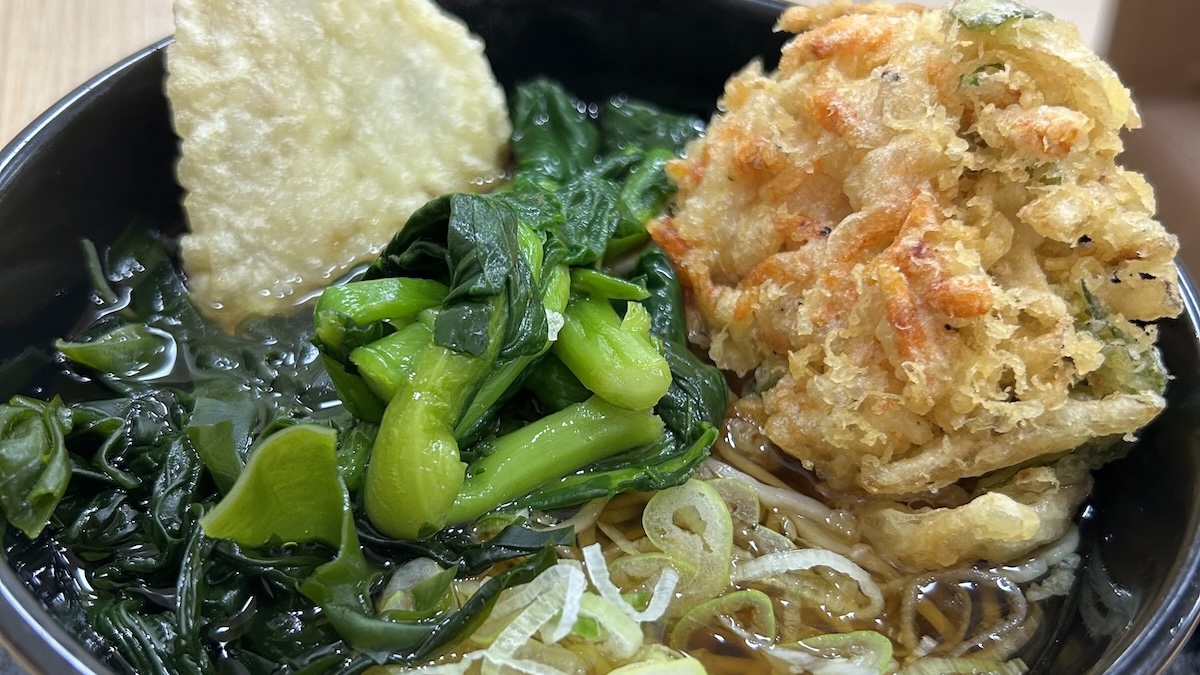 終了間近!? 箱根そばの「生桜海老のミニかき揚げ天とレンコダイ天~菜の花添え~」そば・うどん