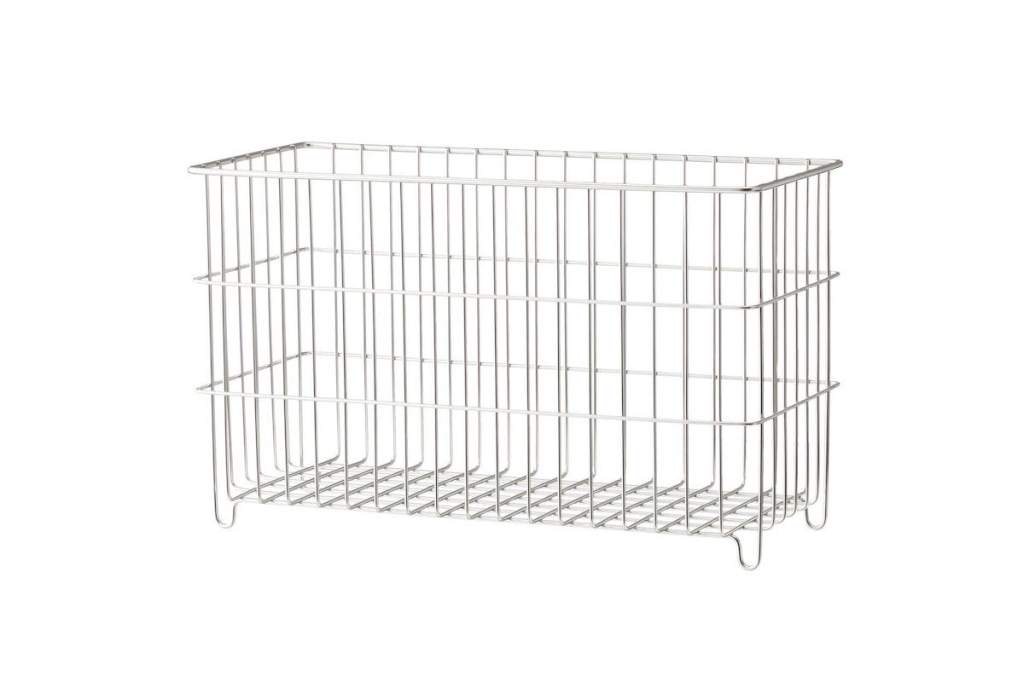 ペーパーハンドタオルを入れたティッシュケースを壁に両面テープで貼り付けてしまおうかとも考えたのですが、スマートな解決策とは言えません。そんなとき思い出したのが、無印良品の店舗で見かけたワイヤーバスケットです。