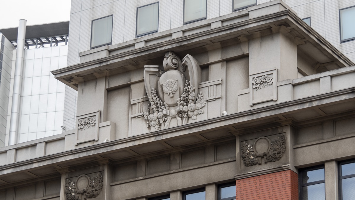 旧横浜生糸検査所の歴史を伝える横浜第二合同庁舎のレリーフ